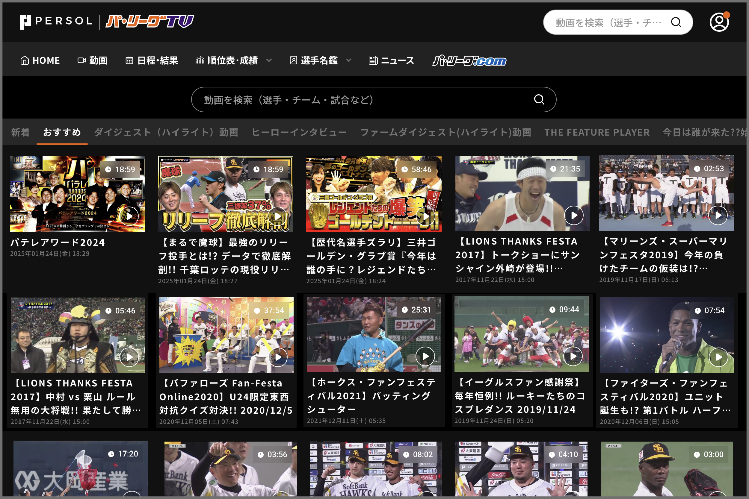 2012年以降の13年分、パ・リーグ主催6,000試合以上の見逃し視聴が可能!