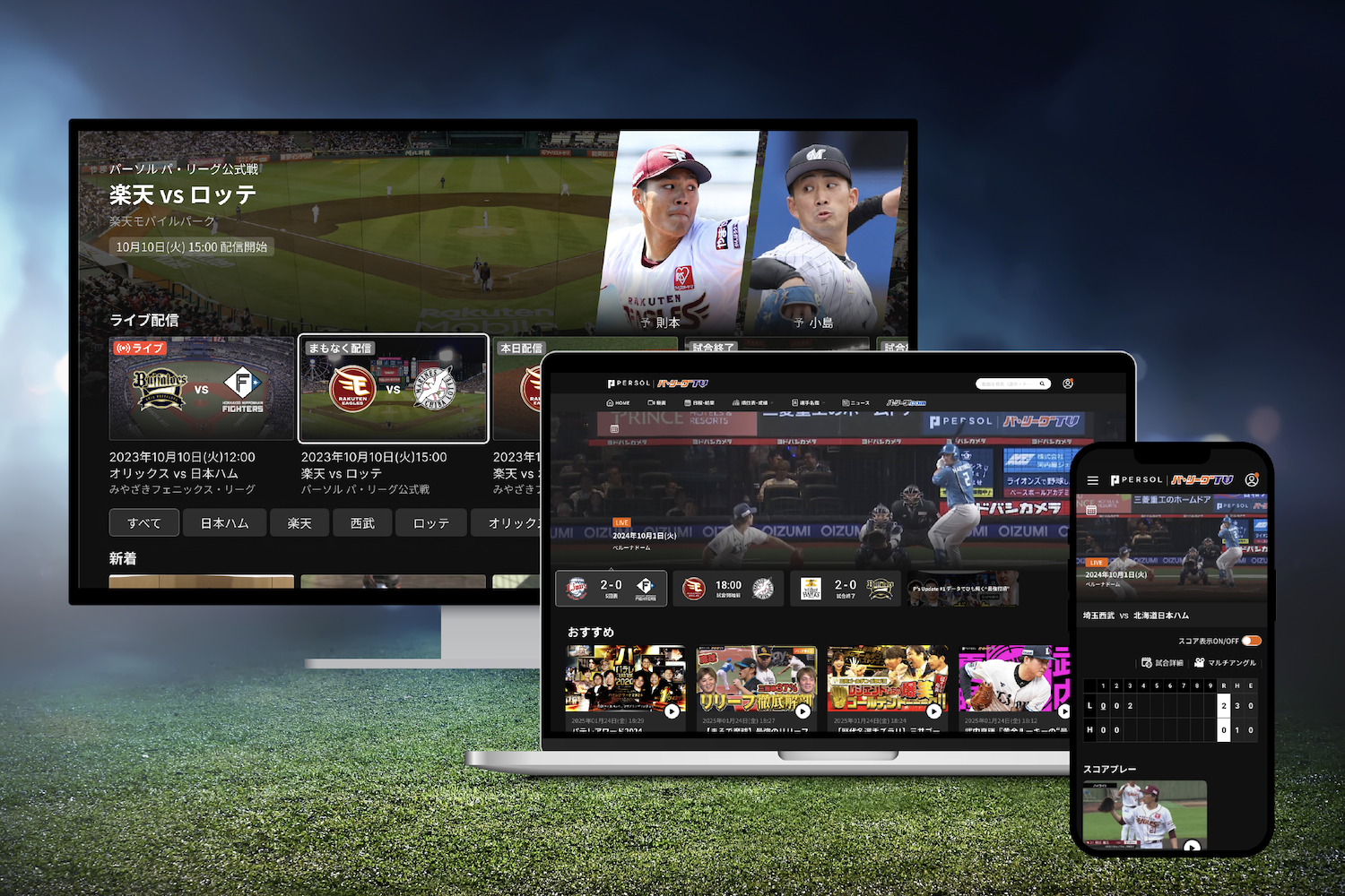 PCでもスマホでもTVでもパーソル パ・リーグTVが楽しめます。