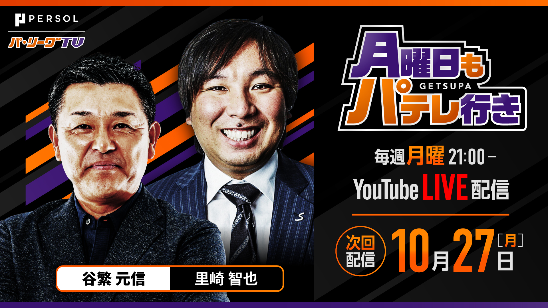 「月曜日もパテレ行き」は、プロ野球シーズン中の毎週月曜21:00よりパーソル パ・リーグTV公式YouTubeチャンネルでお届けするLIVE配信番組です!