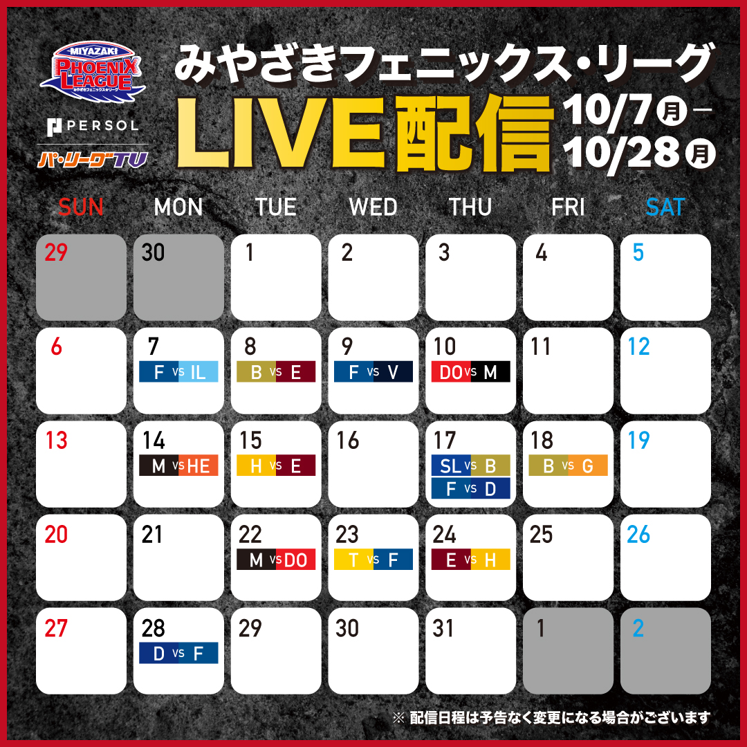 10/7(月)〜10/28(月)「第21回みやざきフェニックス・リーグ」が開催されます!
