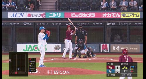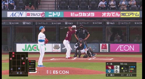 守備変更:黒川→ファースト 守備変更:小深田→セカンド 守備変更:宋家豪→ピッチャー