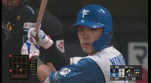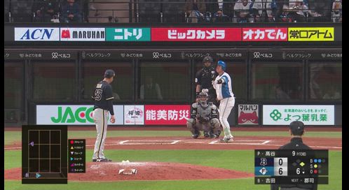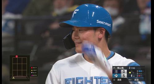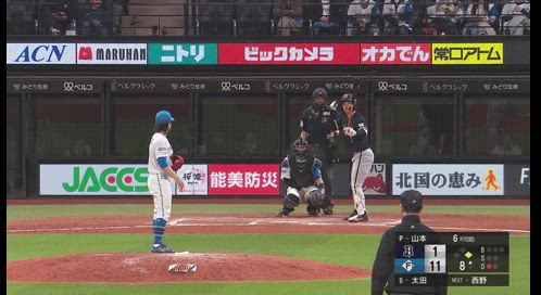 守備変更:五十幡→センター 守備変更:西川→ファースト 守備変更:山本→ピッチャー