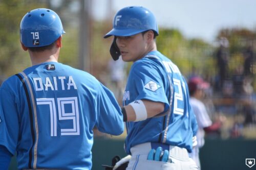 6回は水野の右越え三塁打などで一死満塁とし、清宮幸の4安打目となる右前適時打で6点目。清宮幸は4打数4安打1打点、水野は3安打1打点、五十幡、野村、万波はそれぞれ2安打をマークし、対外試合初戦から打線が快音を重ねた。