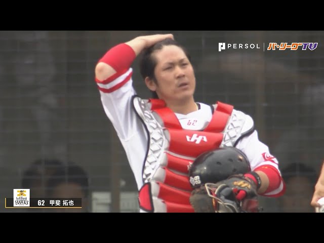 ホークス・甲斐 二度の盗塁阻止(二度の髪サラサラ)