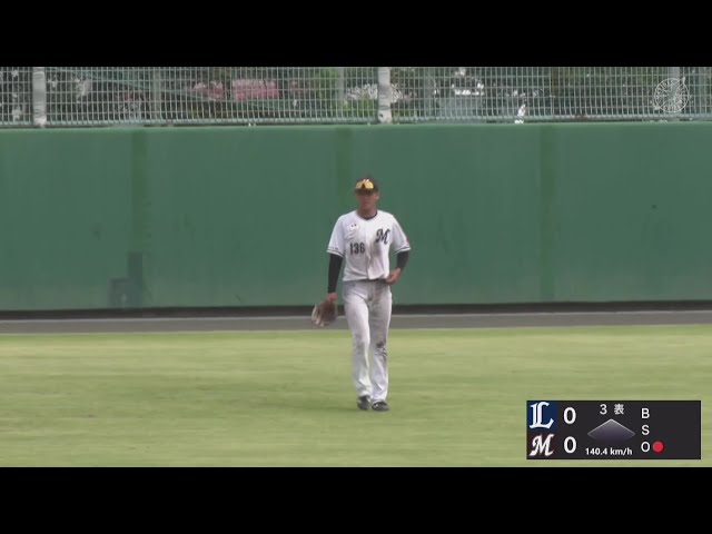 【ファーム】マリーンズ・藤田和樹 素早い返球でランナーの2塁進塁を阻止する!! 2025年9月23日 千葉ロッテマリーンズ 対 埼玉西武ライオンズ