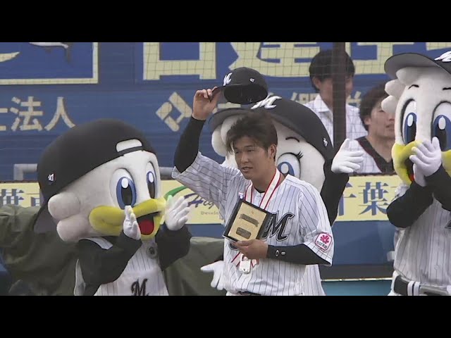マリーンズ・中村奨吾 NPB通算1000本安打達成表彰式!! 2024年7月9日 千葉ロッテマリーンズ 対 東北楽天ゴールデンイーグルス