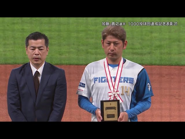 ファイターズ・加藤貴之 通算1000投球回達成記念表彰式!! 2024年6月28日 北海道日本ハムファイターズ 対 福岡ソフトバンクホークス