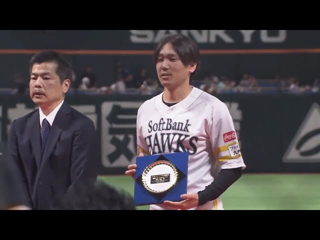 ホークス・石川柊太 ノーヒットノーラン達成記念表彰式 2023年9月7日 福岡ソフトバンクホークス 対 千葉ロッテマリーンズ