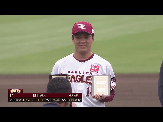 イーグルス・則本昂大 プロ通算100勝・1500投球回達成表彰式!! 2022年7月18日 東北楽天ゴールデンイーグルス 対 オリックス・バファローズ