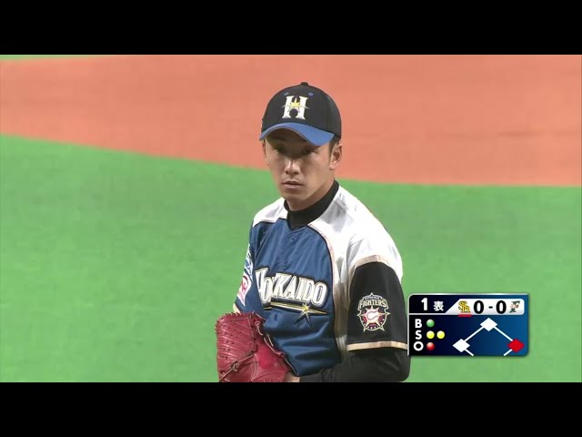 1回表 ファイターズ先発・斎藤佑が牽制アウトなど高い集中力で無失点に抑える!! 2014/7/12 F-H