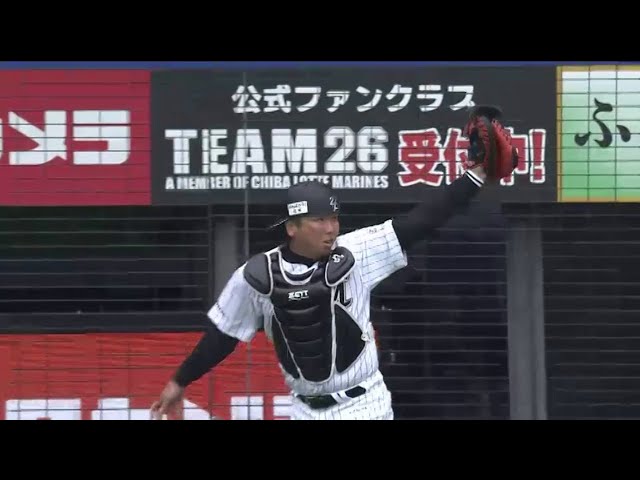 マリーンズ里崎 フェンスに激突しながらもフライを好捕!! ルーキー吉田の活躍に刺激!! 2014/3/14 M-Bs