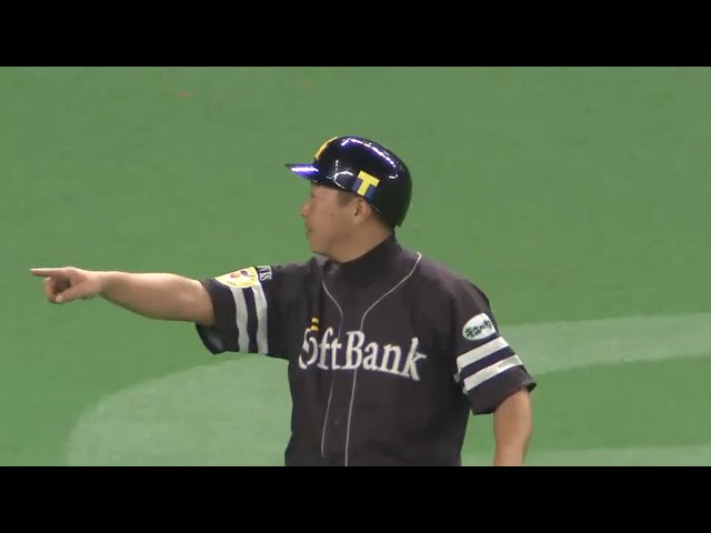 【5回裏】ホークス・飯田コーチがクルクル回避!! 抜群の運動神経は健在!? 2015/8/14 H-L