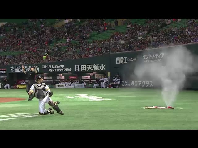 ホークス鶴岡がスプレー踏みつけ 中身がプシャー!! 2014/3/21 H-C