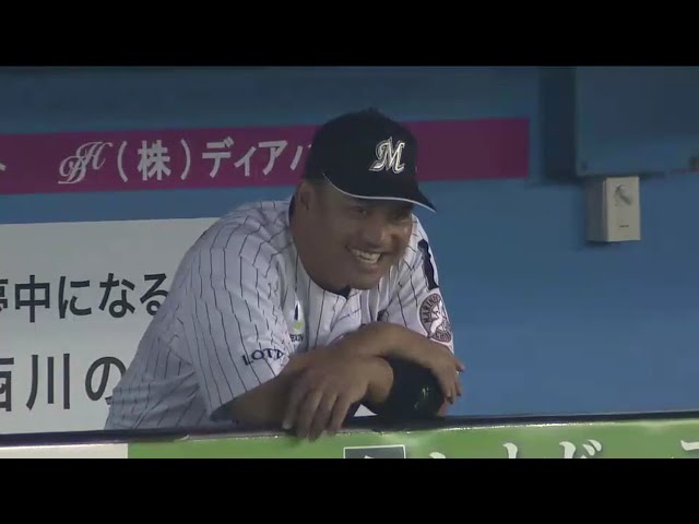 【1回裏】マリーンズのメンバーも笑う!? 角中の打球が松山コーチに直撃... 2016/10/4 M-E