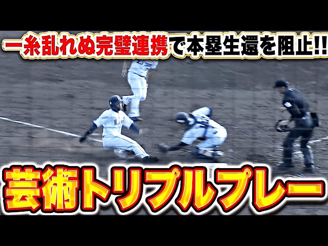 【芸術トリプルプレー】2ランスクイズ許さぬ…『見事な三重殺!獅子守備陣が完璧な連携プレーを見せる!』