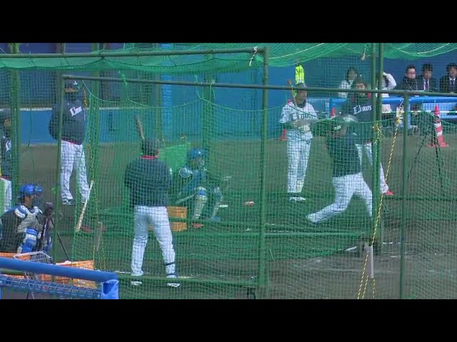 【春季キャンプ】ライオンズ・栗山と中村がゲージ内で揃ってバッティング練習!!