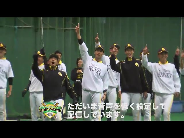 【春季キャンプ】ホークスの選手達がウォーミングアップで気合の「1ダホー」!!