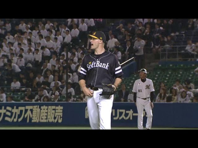5回裏 ホークス・スタンリッジ またも2アウトから連打も再びマリーンズ・鈴木を打ち取る!! 2014/5/13 M-H