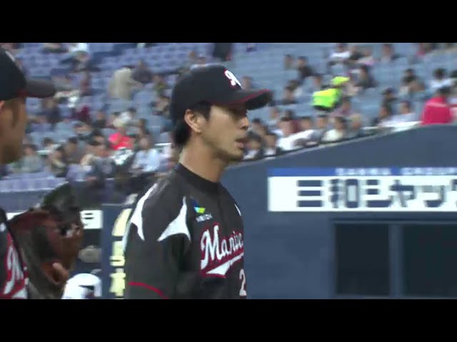 9回表 マリーンズ先発のルーキー石川は 9回3安打1失点の好投!! プロ初完投&初勝利をマーク!! 2014/4/6 M-F