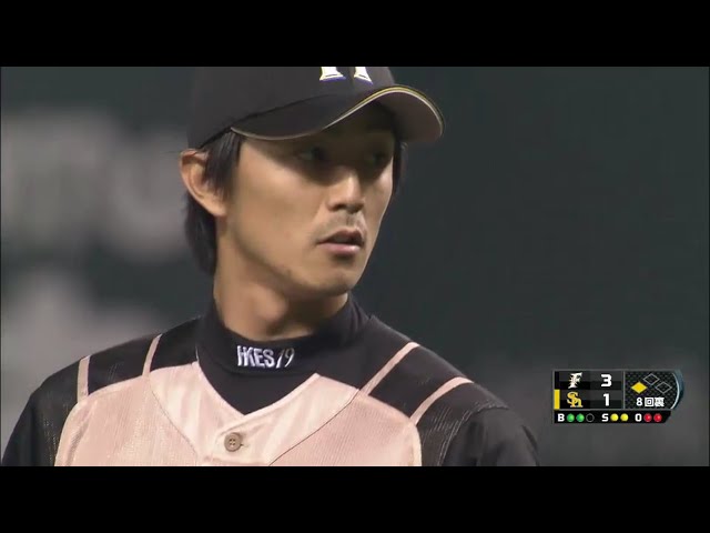 二死3塁でファイターズ増井がホークス内川を中飛に打ち取る!! 2014/4/2 H-F