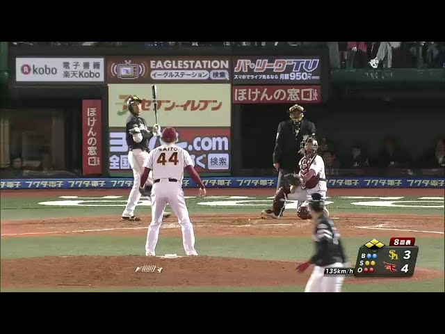 8回表 イーグルス斎藤 一死満塁でホークス松田・柳田を打ち取り ピンチ脱出!! 2014/4/4 H-E