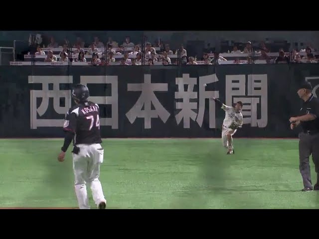 【6回表】正確で早い!! ホークス・上林が最少失点に封じる好送球!! 2018/10/3 H-M