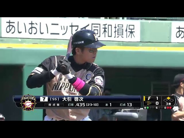 3回表 ファイターズ大引がタイムリー安打!! 得点圏打率4割超!! 勝負強さを見せつける!! 2014/5/11 Bs-F