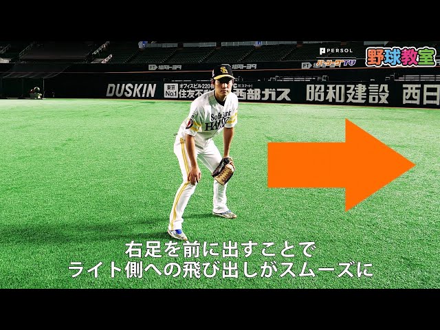 【パーソル パ・リーグTV野球教室】ホークス・上林選手 素早く動き出すための構え方