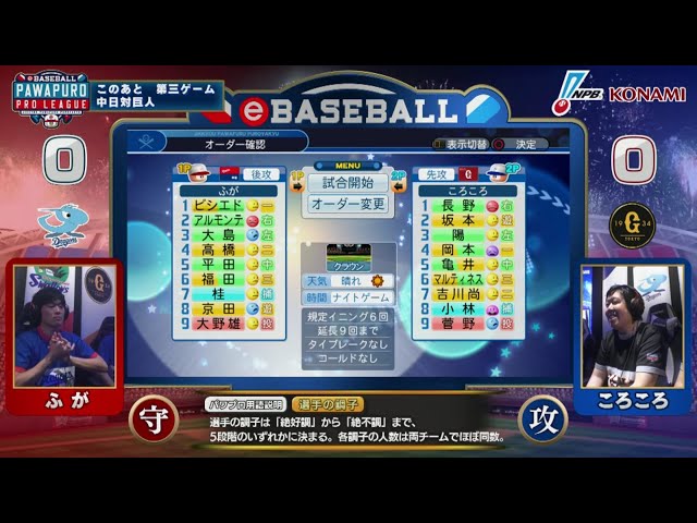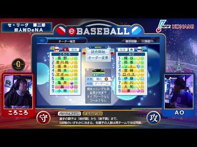 【eBASEBALL】第2節 ジャイアンツ-ベイスターズ 第1試合