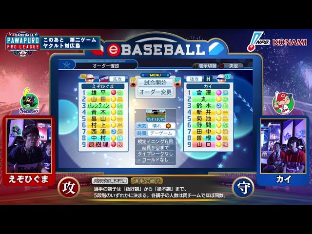 【eBASEBALL】第2節 スワローズ-カープ 第1試合