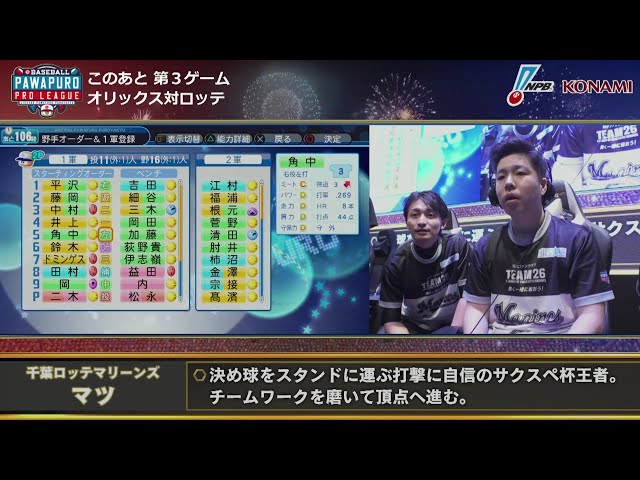 【eBASEBALL】開幕節 バファローズ-マリーンズ 第3試合