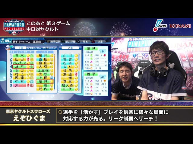 【eBASEBALL】開幕節 スワローズ-ドラゴンズ 第2試合
