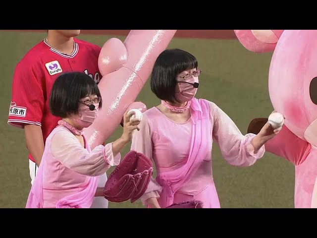ピンクの衣装が映える!! お笑いコンビの阿佐ヶ谷姉妹がファーストピッチ!! 2021/8/31 M-L