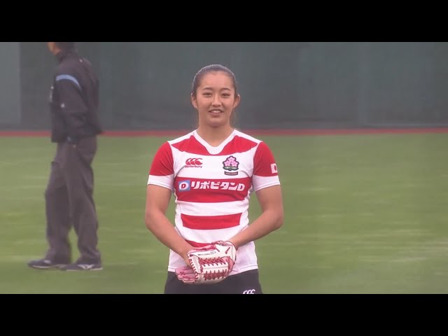 【始球式】女子15人制ラグビー日本代表の佐藤優奈選手が始球式!! 2020/10/10 E-L