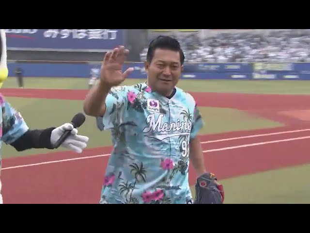 【始球式】拍手に包まれる!! OBの初芝清氏が始球式!! 2019/7/6 M-L