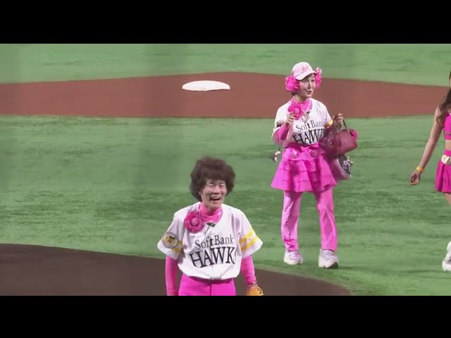 【始球式】今日もピンクが目立ちます!! 林家ペーパー夫妻が始球式に登場 2019/5/4 H-B