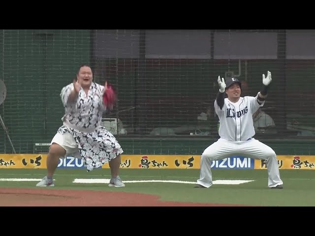【セレモニアルピッチ】野球で対決!! ライオンズ・山川 vs 北勝富士関 2019/5/5 L-E