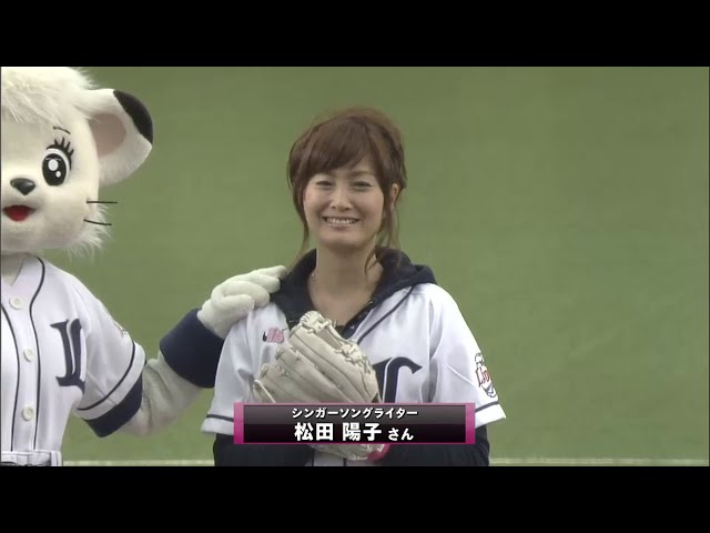 ライオンズ始球式に子宮頸がんを克服したシンガーソングライターの松田陽子さんが登場。 2014/5/6 L-E