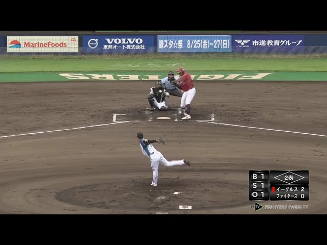 【ファーム】強肩発動!! ファイターズ・清水がストライク送球で盗塁阻止!! 2017/8/1 F-E(ファーム)