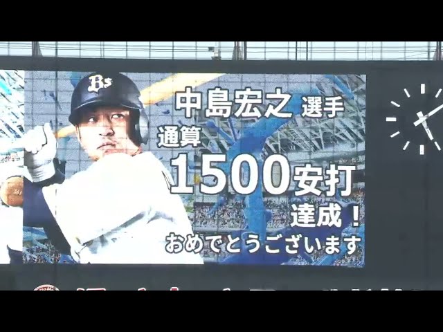 【6回裏】バファローズ・中島 史上119人目となる通算1500安打達成!! 2016/5/28 Bs-L