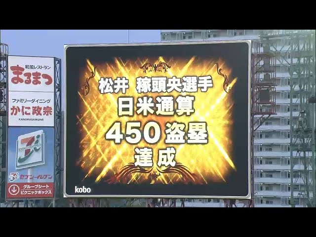 【1回裏】イーグルス・松井稼 日米通算450盗塁達成!! 2015/4/24 E-M