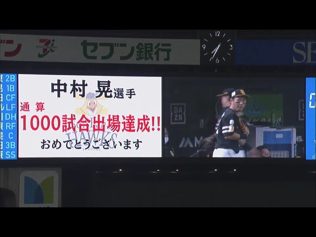 【5回裏】ホークス・中村晃 通算1000試合出場を達成!! 2020/10/8 L-H