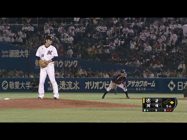 5回表 見事な牽制!! マリーンズ・涌井 粘りを見せて5回まで2失点!! 2014/5/20 M-S