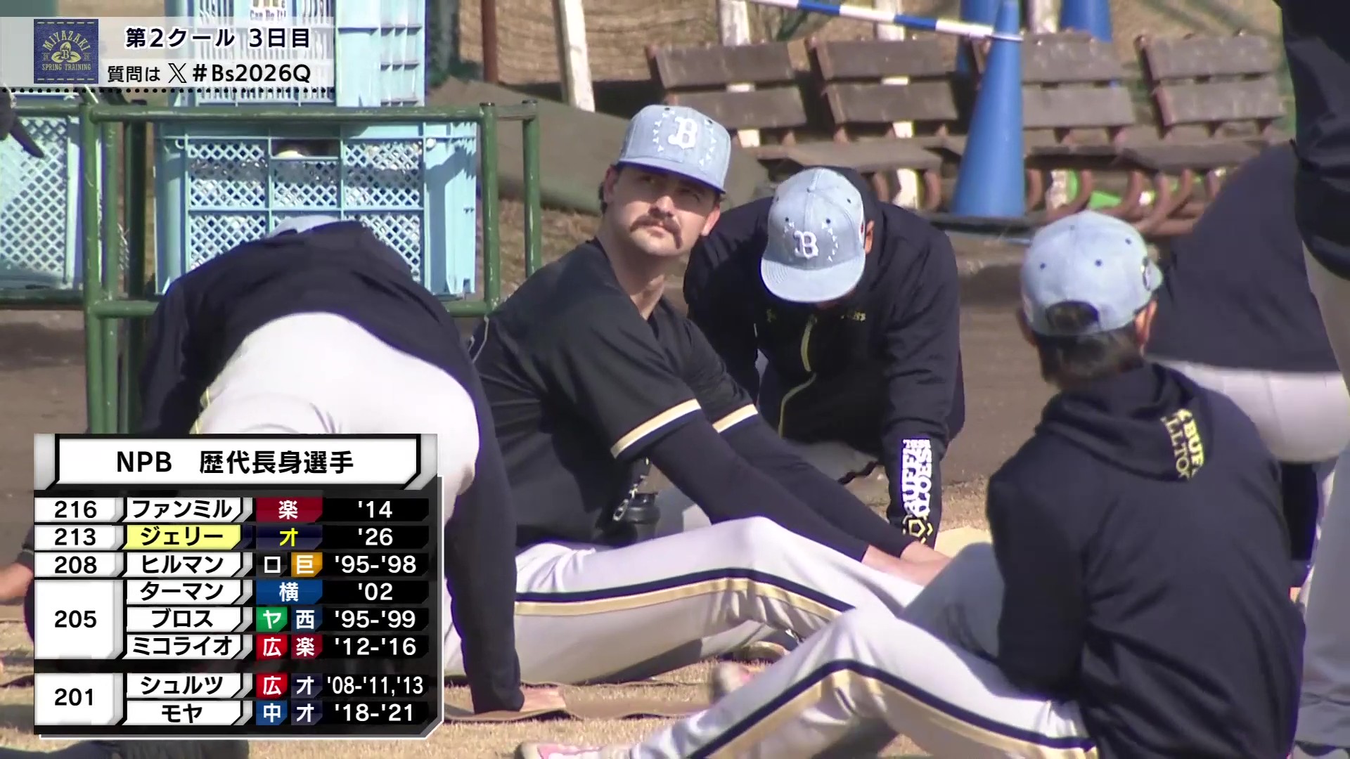 【春季キャンプ】213cmの長身右腕 バファローズ・ジェリーはアップもダイナミック!! 2026年2月7日 オリックス・バファローズ